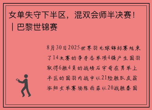 2025年世界羽毛球锦标赛今天即将打响。当地时间8月22日晚,中国羽毛球队顺利抵达法国巴黎。短暂休整后,全队于接下来的两天在拉夏贝尔门体育馆开始了本届世锦赛前的最后适应性训练。一年前,巴黎奥运会羽毛球比赛正是在这座体育馆举行,如今重返故地,正是重新再来、吹响号角的时刻。首日队伍在2号与4号场地进行热身,翌日转至1号与3号场地,单次训练时间为90分钟,队员们力求在最短时间内找到最佳状态。历来适应性训...