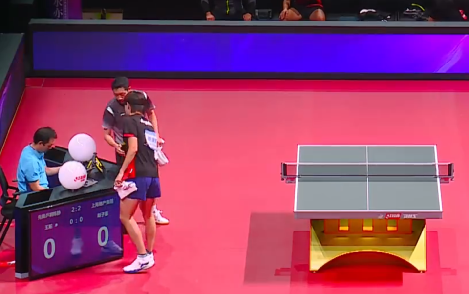 不只是许昕与费浚航的比赛,王楚钦与孙闻的比赛中,也遇到了发球争议。在第一局比赛中,孙闻10-9率先拿到局点,但是接下来的发球被判违规,比分变成了10平。当时,孙闻和教练向裁判询问,但是并未获得满意的答复。